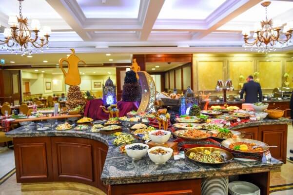 سيُقدَم أثناء وجبتي الإفطار والسحور خلال شهر رمضان في فندق جراند حياة الدوحة بوفيه لذيذ ومحطات الطهي الحية للمأكولات المفضلة التقليدية والعالمية، بالإضافة إلى عزف الموسيقى الشرقية الحية المكملة للجو العربي