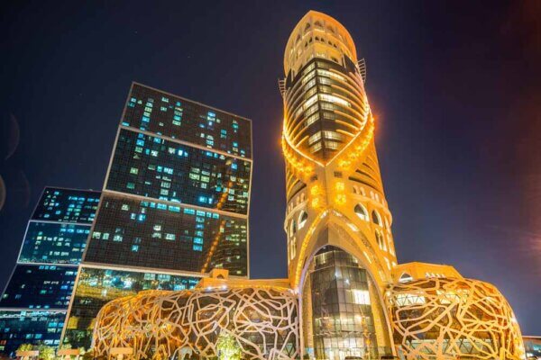 Are you trying to find the perfect staycation in Qatar? This luxurious all-suite hotel on Lusail Marina Promenade is nestled among the magnificent Katara Towers. It offers spectacular Gulf views and is ideally positioned 6 km from Doha Golf Club and 27 km from Hamad International Airport. This makes it a standout among the best hotels in Qatar.