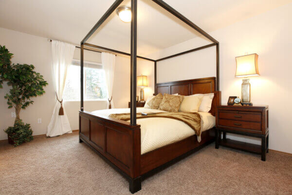 Canopy beds are making a huge comeback, and it’s easy to see why! Not only are they regal, but they also add a special something to any bedroom. Remember to consider the size of the bed and the canopy as to not go overboard – you’ll end up with a bulky look.